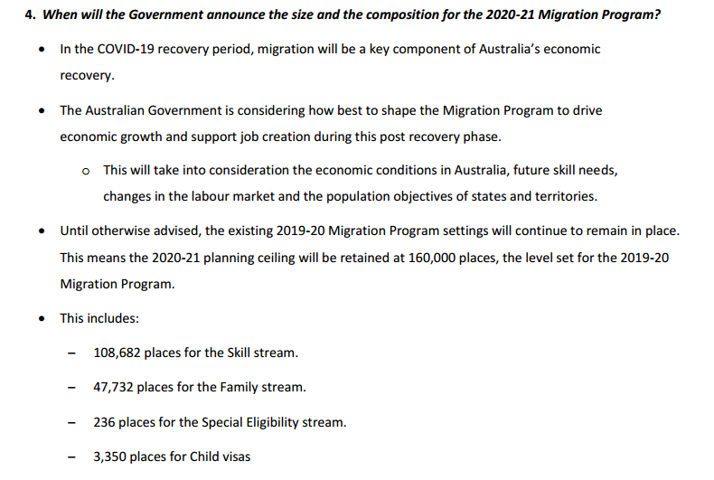 澳洲移民局同時公布了2020-2021財年澳洲移民計劃Q&A,針對大家關注的移民配額、州擔保發放、EOI邀請以及未來澳洲移民前景等相關問題一一作了解答。