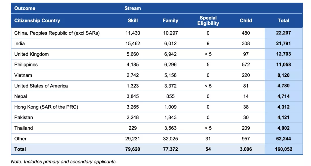 2020-21財年,中國大陸新移民的數(shù)量最多,成為澳大利亞第一移民來源國。