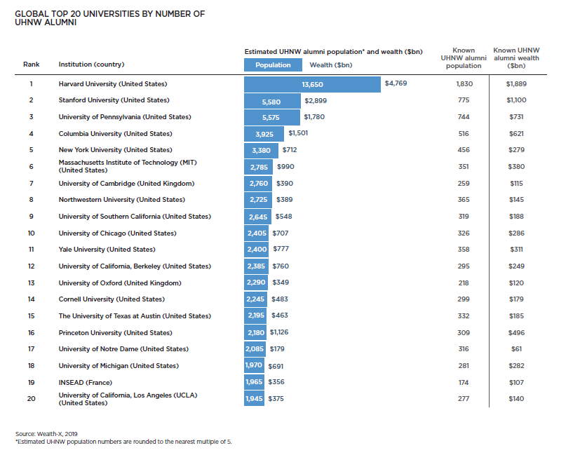 Wealth-X2019大學超高凈值校友排行榜前20名