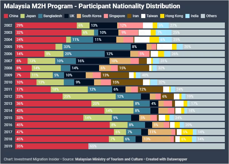 據(jù)馬來(lái)西亞旅游和文化部副秘書長(zhǎng)透漏,去年中國(guó)大陸公民約占第二家園項(xiàng)目所有申請(qǐng)量的35%,此外,前10的申請(qǐng)人來(lái)源國(guó)/地區(qū)還包括韓國(guó)、香港、日本、孟加拉、英國(guó)、新加坡、美國(guó)、臺(tái)灣、印度,但沒有透漏各個(gè)國(guó)家/地區(qū)的具體數(shù)字。
