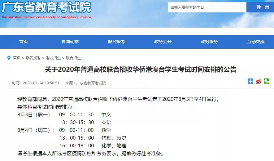 據廣東省教育考試院公布