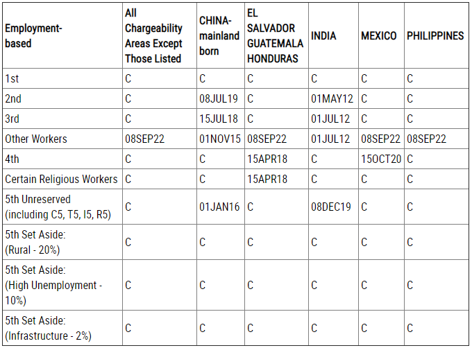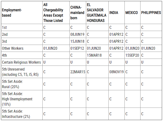 EB-5預留類別(農村項目、高失業率項目、基建項目):無排期。