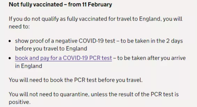 而對于沒有在獲批地區(qū)接種英國認(rèn)證疫苗的旅客,或未完全接種疫苗的旅行者,需要提供: